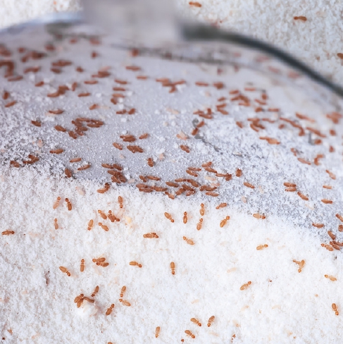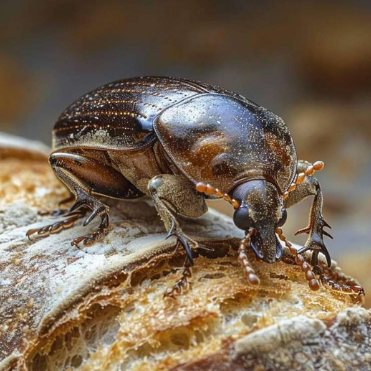 La vrillette du pain est un coléoptère foreur très répandu dans les habitations, appartenant à la famille des Anobiidae. Elle s’attaque principalement aux denrées riches en amidon : pain, pâtes, biscuits, épices, chocolat et fruits secs. C’est l’un des ravageurs des stocks alimentaires les plus fréquents en milieu domestique. La femelle pond jusqu’à 75 œufs, donnant naissance à des larves actives qui se développent surtout dans des environnements chauds et humides. L’adulte mesure 2 à 4 mm, de couleur brun à brun-rouge, avec un corps finement velu.