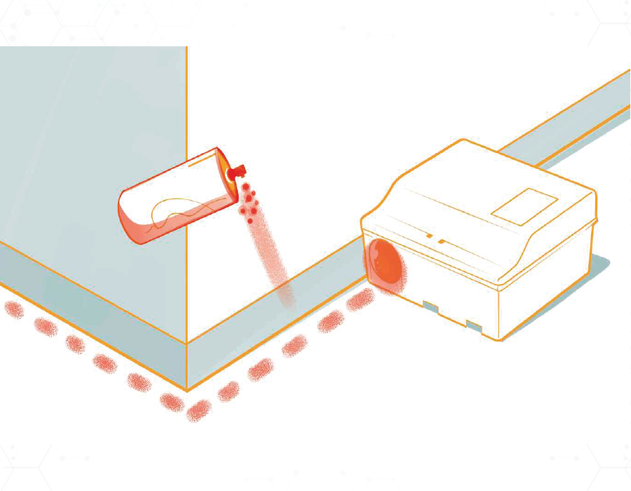 2- Appliqué directement sur les postes d’appâtages (couvercle, entrée, porte-appât), il renforce la consommation des appâts raticides mis en place et réduit le délai habituel avant 1ère consommation.