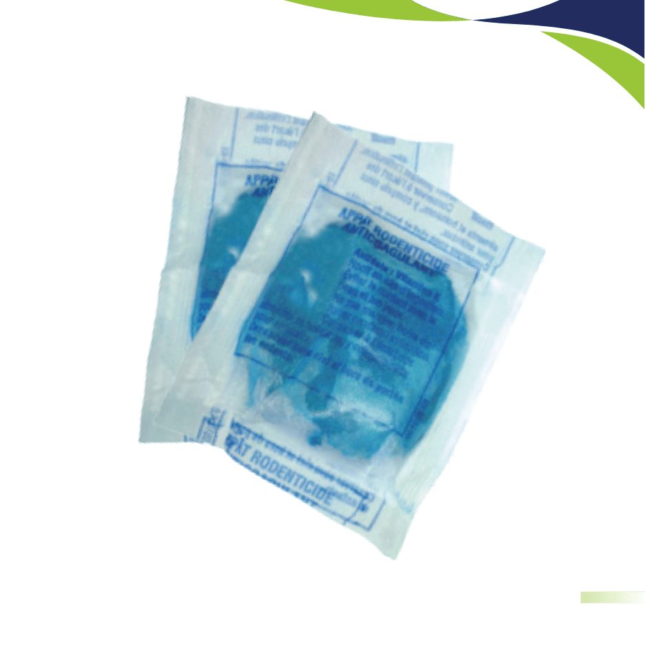 La matière active de dernière génération, le BRODIFACOUM, est un puissant anticoagulant efficace à faible dose et sans résistance connue à ce jour. Contrairement aux anticoagulants de 1ère génération, il peut provoquer la mort quelques jours après la première prise («Single feed»).