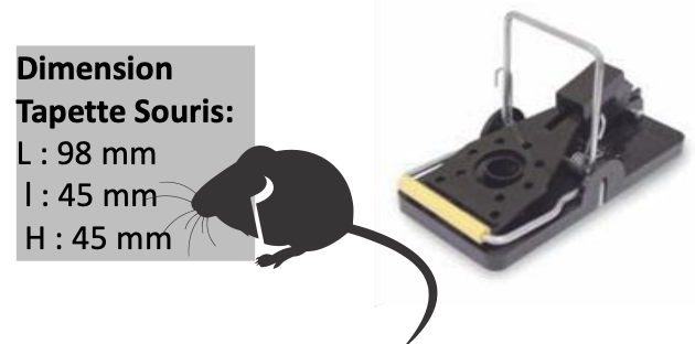 métallique lorsqu’un rongeur y exerce une légère pression. Un espace est prévu pour déposer