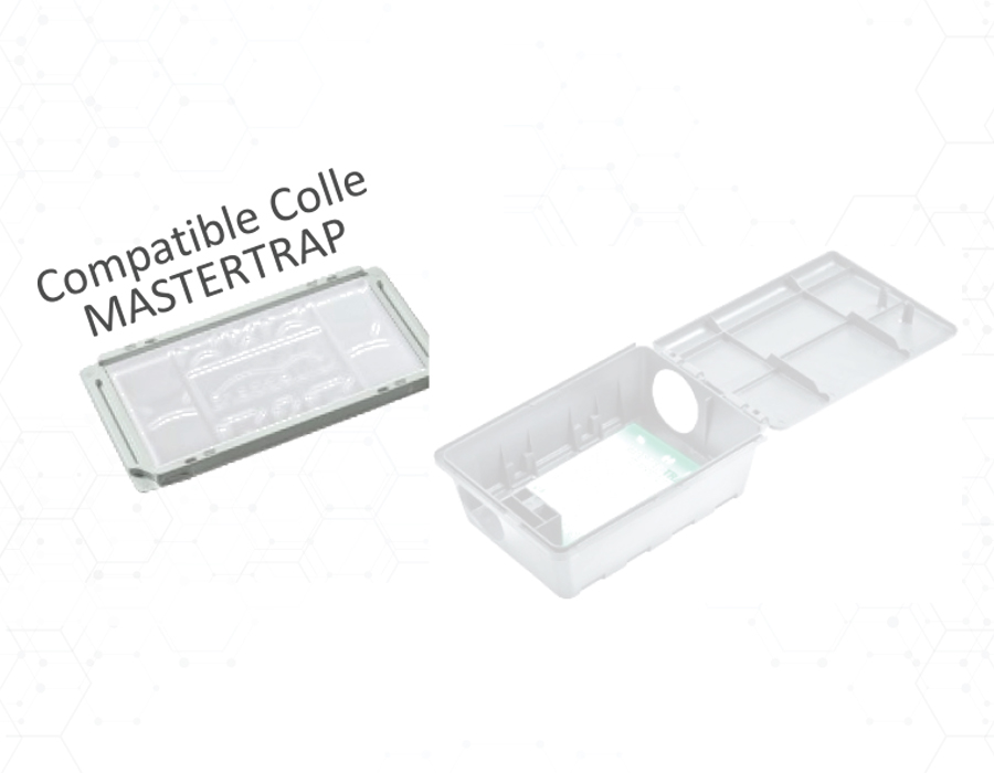 En effet, il peut parfaitement s’associer à la plaque adhésive plastique MASTERTRAP BLANC (réf. 141-TB), ou avec la plaque adhésive carton MASTERTRAP RATS (réf 129), pour former un dispositif efficace et sécurisé de capture des Rats et Souris. Une fenêtre de visualisation facilite le contrôle pour les techniciens 3D en agro-alimentaire.